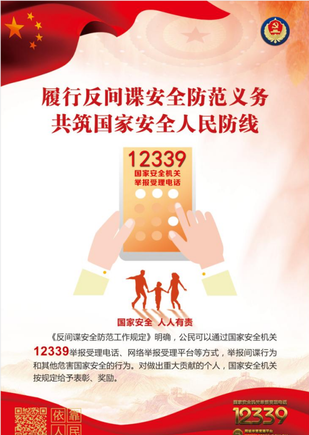 11月1日,是《中華人民共和國反間諜法》頒布實施八周年紀(jì)念日。反間諜法是我國國家安全法律制度體系的重要組成部分,國家安全人人有責(zé),既需要人人參與,也必須人人負(fù)責(zé)、人人盡責(zé)。